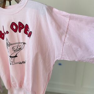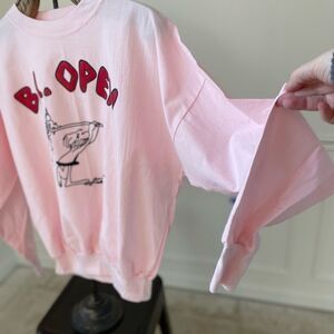 Vintage 70s Johnny Hart B.C. Comic graphic dolman cut tshirt with knit waist and cuffs. I think this is new old stock, but since there are no tags, let’s just say it looks like it’s never been washed or worn. Although the comic dates back to 1958 I think this is 70s issue (perhaps even 80s?) Laying flat measures approximately 25 inches shoulder to him and 24 inches armpit to armpit. It is cut like a sweatshirt, but the material is like a T-shirt. 100% cotton made in the USA by Velva Sheen