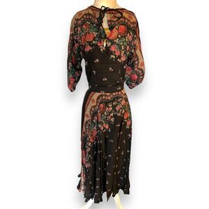 Rare Vintage 70’s Chessa Davis USA Black Floral 2 Piece Long Maxi Dress sz 4 Whimsigoth Cottage Witchy