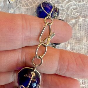 Style Profile vintage cobalt blue beads art glass handmade caged bead blue artisan antique colorful 70's artisan handmade retro boho art to wear wire wrap