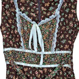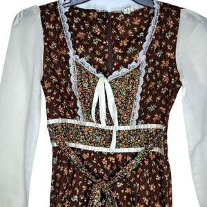 Vintage 70s Floral Prairie Dress Sheer Sleeves and Lace Trim Size 5