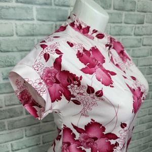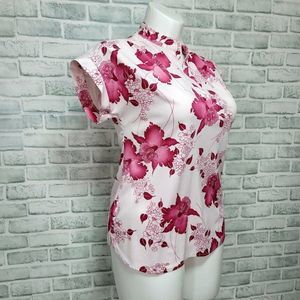 Details: Vintage 70's Short Sleeve Floral Spring Summer Blouse Top
