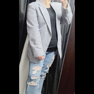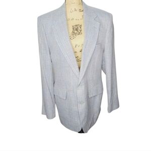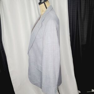 DETAILS: Classic long line menswear blazer with button front and notched collar. inner lining, made in USA. glenchecj plaid pattern