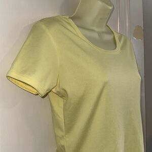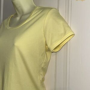 Vintage 70s Lady Arrow yellow thin knit polyester short sleeve top