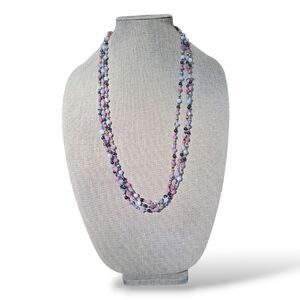 Vintage 70s Lavendar Triple Strand Bead Necklace