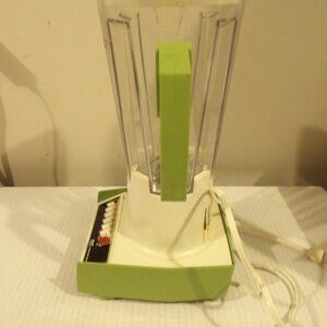This is a tested and working vintage Proctor Silex blender. It is a 7 speed and avocado green in color. The base and pitcher are plastic and it comes with the manual. Please see pictures. (Iago)