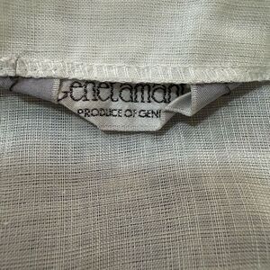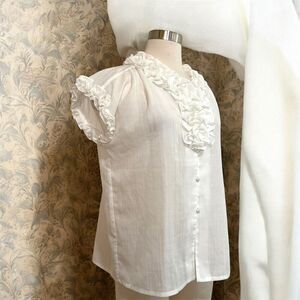 Vintage Gentleman’s brand 1970s high mock neck collar ruffled short sleeve off white ivory blouse.