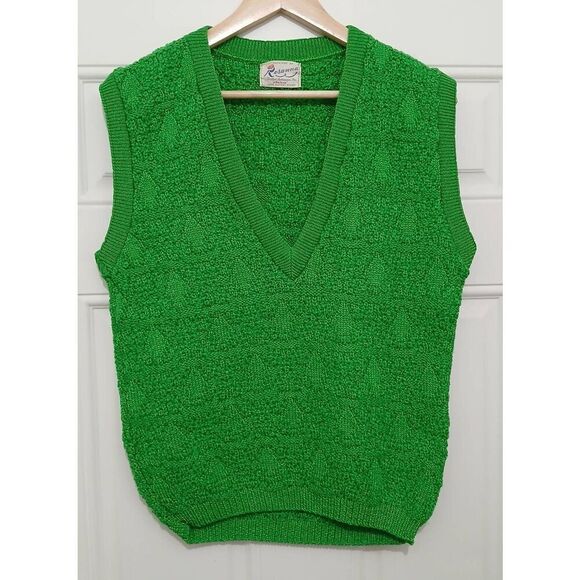 Vintage 70's Rosanna womens large 100% dupont nylon kelly green knit vest