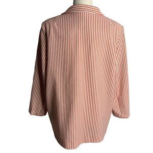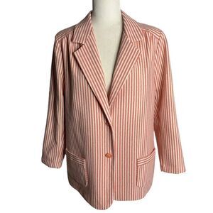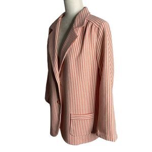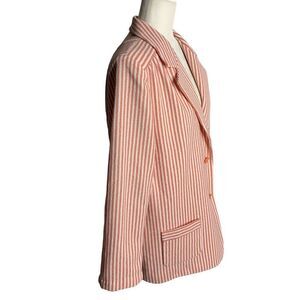 Vintage 70s Striped Polyester Double Knit Blazer Jacket L White Salmon Pockets