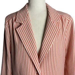 Vintage 70s Striped Knit Blazer Jacket L White Salmon Pockets Two Button Notch