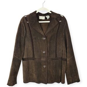 Vintage 70s Style White Stag Brown Boho Leather Crochet Blazer Jacket