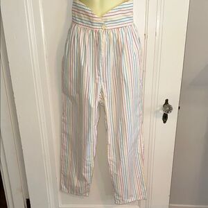 Vintage 70s You Babes Rainbow Vertical Striped High Waisted Cotton Pants