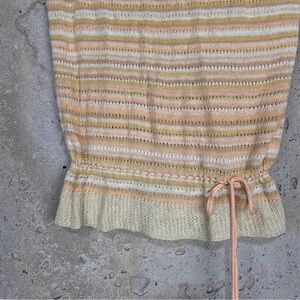 Vintage 70s/80s thyme coral orange, pale yellow and beige horizontal striped sleeveless knit sweater. Optional lower hem line cinch string