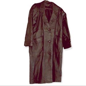 Vintage 70’s 80’s Missy Black 100% Leather Button Full Length Trechcoat Sz M