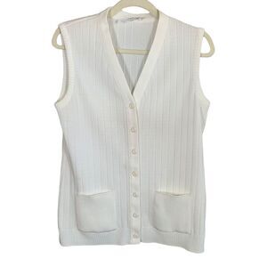 Vintage 70s Cardigan Sweater Vest Oatmeal Sleeveless Knit Vneck Button Front