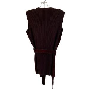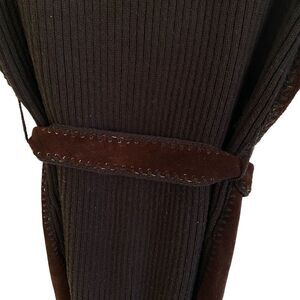 Vintage 70s LG Sweater Bee by Banff Chocolate Brown Split Leather Vest Cardigan