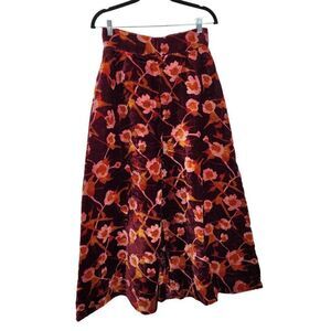 Vintage 70's Pants Bell Bottoms High Rise Wide Leg Flare Velvet Floral Wine S