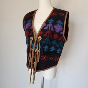 Vintage'80 Woolrich Made in USA Aztec Southwest Wool Leather Trim Vest Women's L