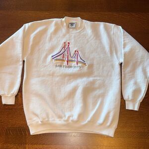San Francisco California Graphic Sweatshirt XL Golden Gate Bridge. Cotton blend, slouchy fit, crew neck, fleece lined, ribbed trim, pullover, thick colorful embroidery.