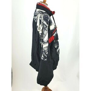Vintage 80s 90s Black Red Studio Art Print Silk Track Jacket Windbreaker Sz S
