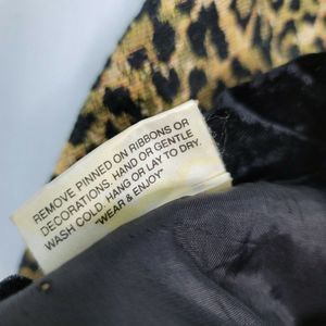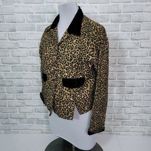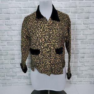 Details: vintage 80s 90s leopard pattern tapestry jacket with black velvet details
