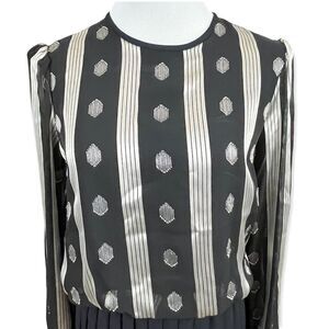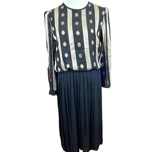 Vintage 80’s Accordion Pleated Dress Black and Silver Small