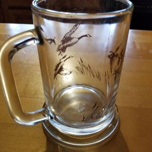 Vintage 80s Avon Clear Glass Brown Canadian Geese Beer Stein Mug