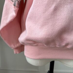 Vintage 80s Boundary Waters pink mixed material sweatshirt with thermal and sweater trim decorated with grey snowflakes. Funnel neck with drawstring. Banded waste. Cotton and polyester blend. Laying flat measure measures 23 inches shoulder to hem and 23 inches armpit to armpit. Light pilling, but you can hardly see it. Check out photos.
