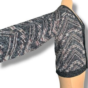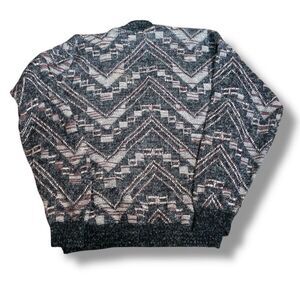 Vintage 80s Cardigan Sweater Oversized Knitted Geometric Pattern Black Brown