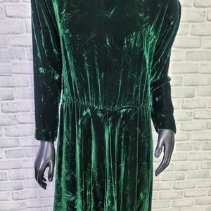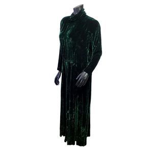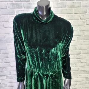 Vintage 80s Carroll Reed M/L Emerald Green Crushed Velvet Mockneck L/S Dress