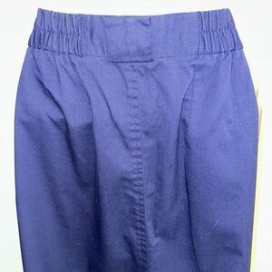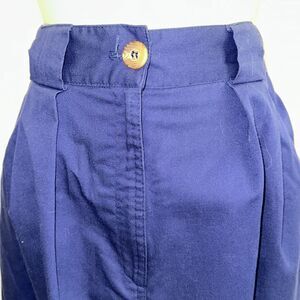 Vintage 80s Chaus Navy Blue Pleat Front Straight Midi Polyester/Cotton Skirt