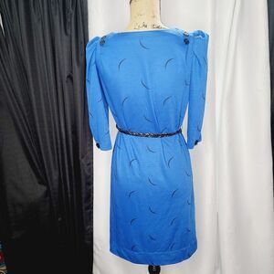 DETAILS: Boat neck with mini puff sleeves and decorative buttons at shoulders. Elbow length sleeves. Functional full back buttons with v-neck. Straight cut but has string belt loops. NO ORIGINAL BELT, belt in photos not included. unlined.