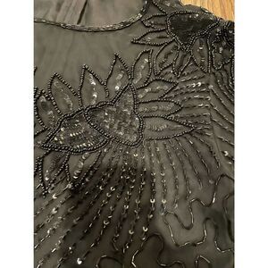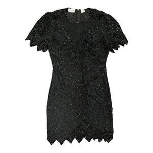 Vintage 80s Denise Elle Black Beaded Dress, size petite S - GUC. A few areas have loose beads. Condition as pictured.