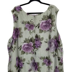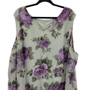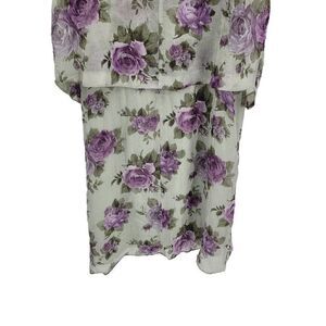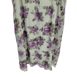 Vintage 80's Dress Set Plus Size 32W Crinkle Chiffon Shift Maxi Floral Sage