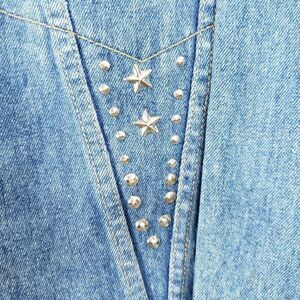 Vintage 80s Freego Blue Denim Western Trucker Jean Jacket S Studded Stars Concho