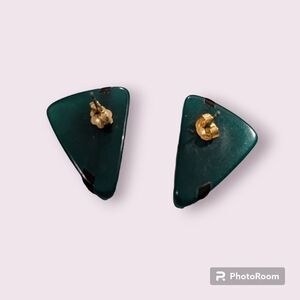 Vintage 80s Green/Black triangle stripe stud earrings 90s