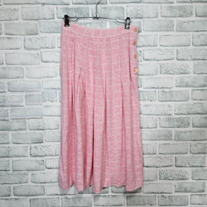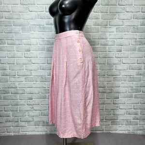 Vintage 80s Haberdasher Womens S Pink White Pattern High Waisted Pleated Skirt
