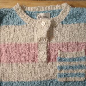 Vintage 80s Here's A Hug Striped Pocket Cropped Henley Sweater - Size Medium, Measures p2p=20" Length=18" Sleeve Length=15" - Excellent Condition, No Flaws