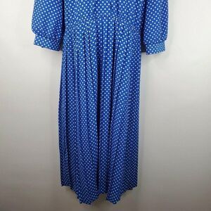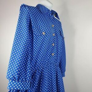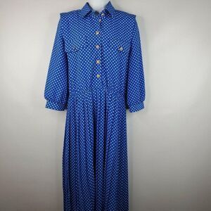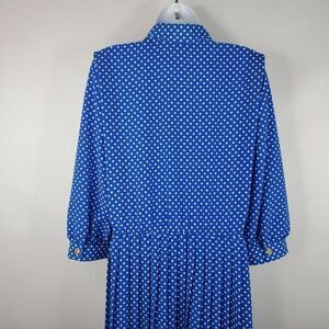 Vintage 80s Lady Carol Secretary Blue Dress Polyester Size 6 P Polka Dot