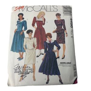 Vintage 80s McCalls 4498 Pattern Misses 6-16 Long Sleeve Dress Variation Uncut