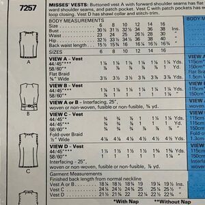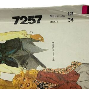 Vintage 80s McCalls 7257 Pattern Misses 6-16 Buttoned Vest Four Styles Cut
