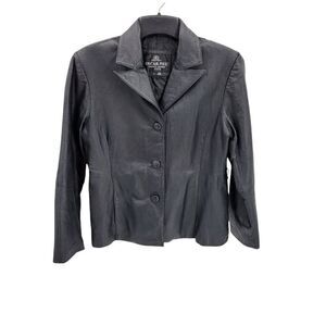 Vintage 80's Oscar Piel Leather Blazer Jacket Button Down Pockets Black Sz L
