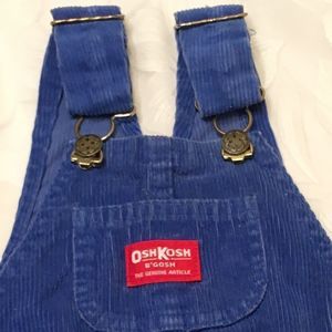 Moved to new 2nd closet @skyrubinetc! Vintage OshKosh B’Gosh royal blue corduroy painter’s style overalls. In very good condition. Measures 17 inches from inseam to top of adjustable shoulder strap. Shoulder strap to hem measures 27 inches. The straps will adjust to size and which will make these measurements adjustable as well. Silver branded button closures on each side. See photos for more details. Collectible item from the 80’s.