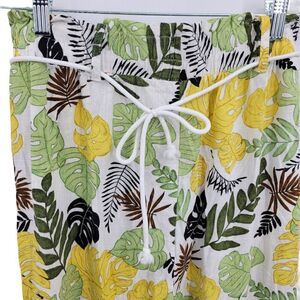 Vintage 80's Palazzo Pants M Tropical Print Linen High Waisted Wide Leg Beach