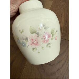 Vintage 80s Pfaltzgraff small ceramic barrel bedside table lamp with pink and blue floral design called Tea Rose, which was very popular in the 80s and early 90s. Pfaltzgraff sticker on the back near the cord with filtered bottom to protect your table top. No lightbulb or lampshade included. The lamp as pictured measures approximately 9 inches top to bottom and approximately 5 inches wide.