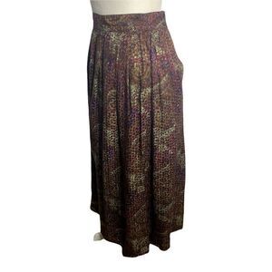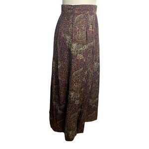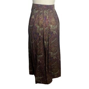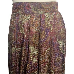 Vintage 80s Pleated Maxi Swing Skirt M Brown Floral Pockets Office Modest