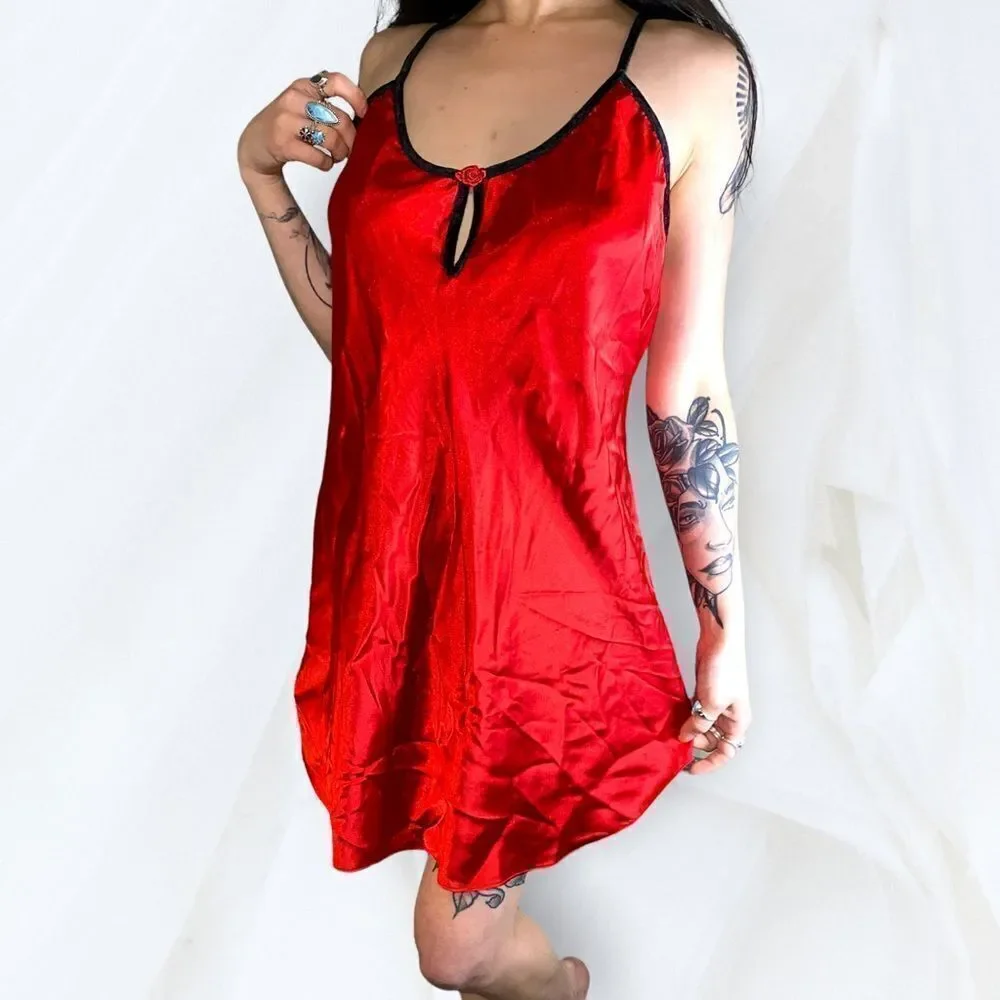 Vintage 80’s Red Satin Chemise by Romantic Moods