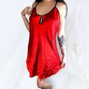 70’s or 80’s Romantic Moods, this red satin chemise is a true vintage gem.