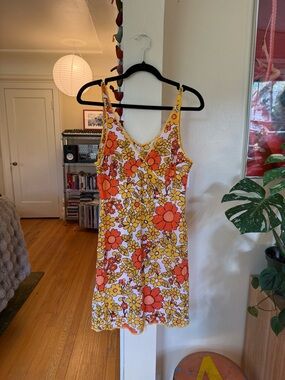 Solid red satin and black velour lining at the bust and straps. Teardrop cutout and small rose floral embellishment at the center of the bust, bottom hemline falls above the knee and straps are not adjustable so please be sure to double check measurements listed below :) Wonderful condition for it’s time period, relaxed fit.