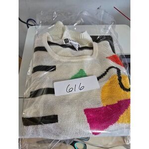 Vintage 80s Sleeveless Knit Top With Bold Geometric Design & Stripes Womens L