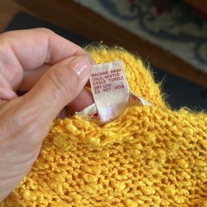 Vintage 80s Sunny Brand (Stein Mart) Golden Yellow Short Sleeve Wide Weave Boucle Acrylic Sweater